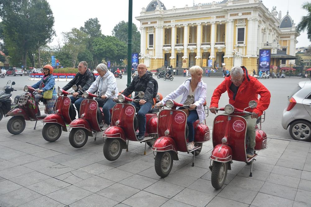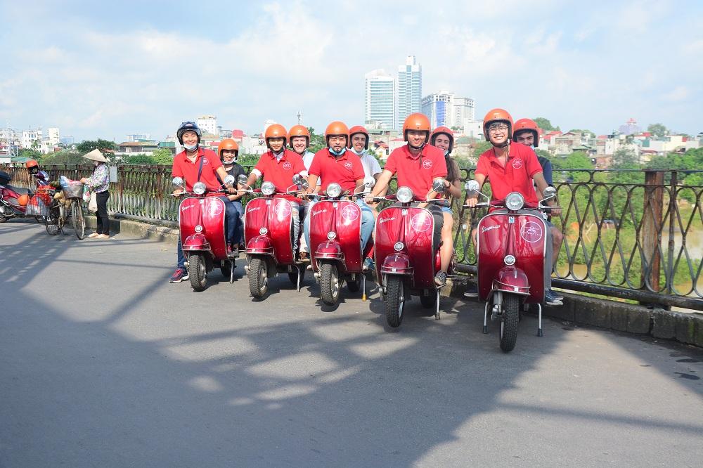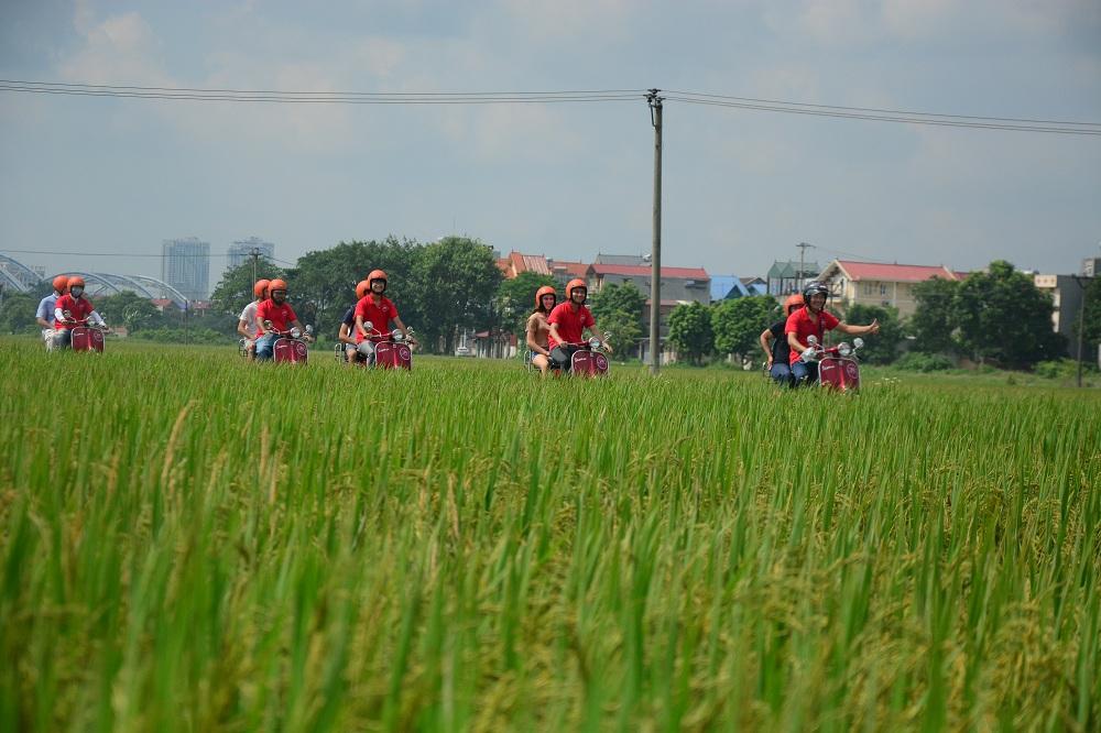 - Venture along the rural pathways bordering the panoramic views of the Red River landscape aboard vintage Vespas, immersing yourself in the tranquil ambiance of flower gardens, vegetable patches, and banana orchards.